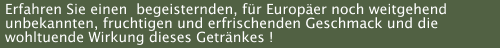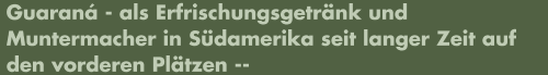Seit vier Jahren entwickeln wir einen Grundstoff für eine in Südamerika, hauptsächlich Brasilien, allgemein bekannte Limonade, die schonend stimulierend auf den gesamten Organismus wirkt. Besonderen Wert haben wir auf natürliche Inhaltsstoffe gelegt.